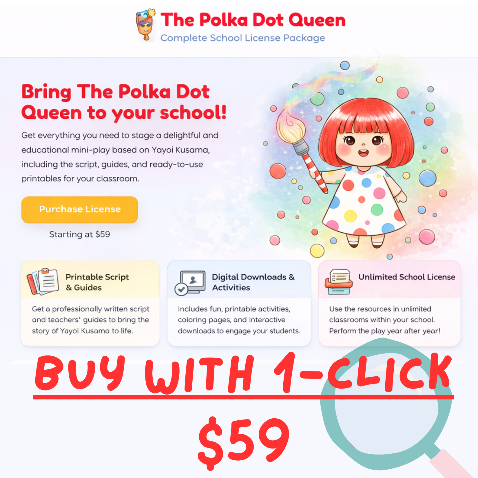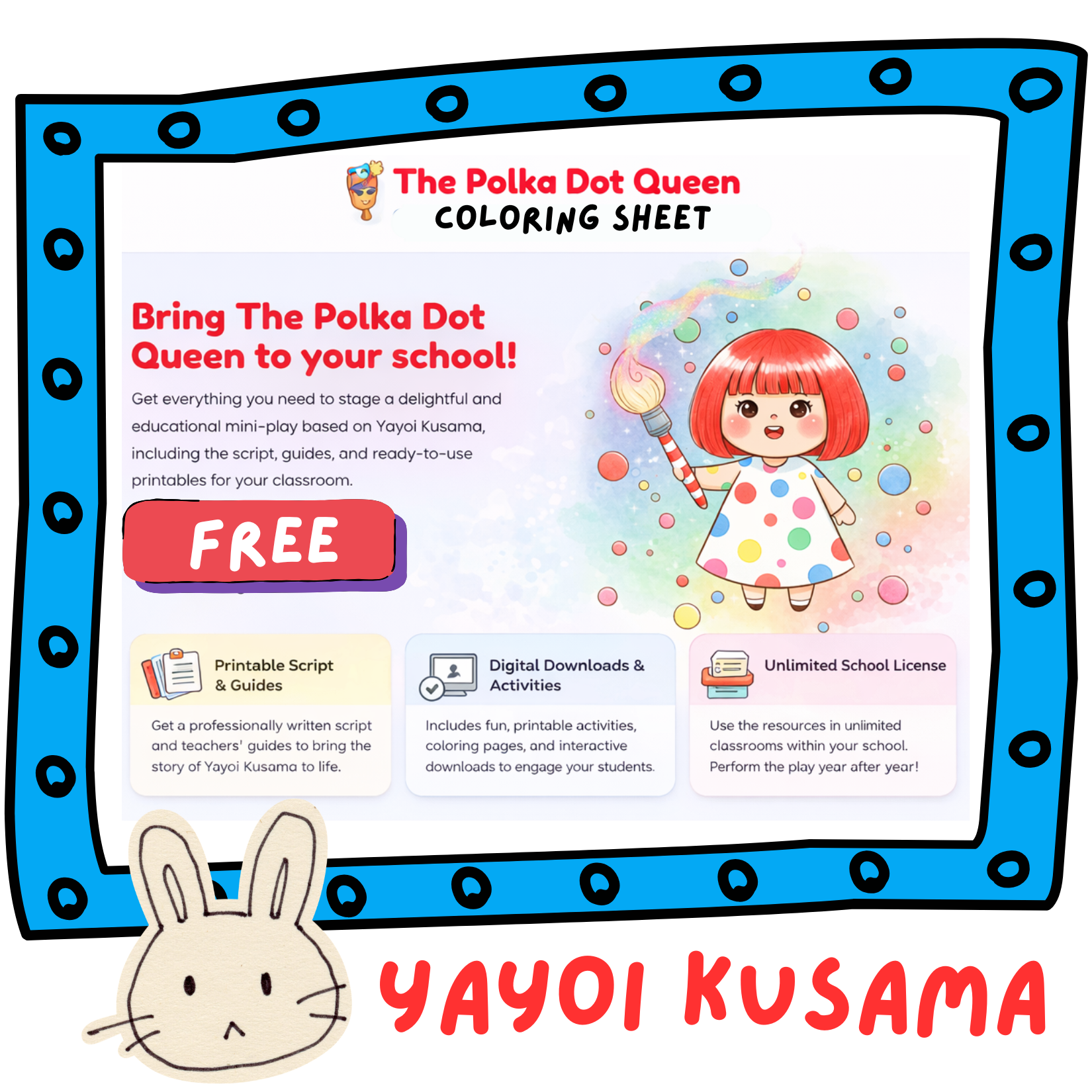 Welcome to an interactive performance guide for educators! This resource brings the magical story of Yayoi Kusama, the Polka Dot Queen, to life through a delightful 5-7 minute play perfect for little learners.